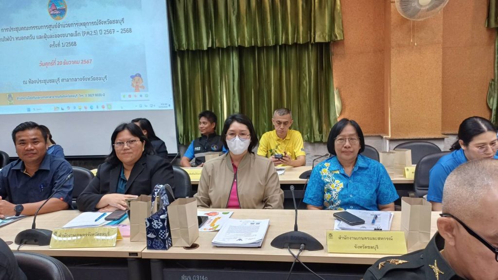 วันที่ 20 ธันวาคม 2567 นางพรทิพย์ ศรีสมโภชน์ เกษตรจังหวัดชลบุรี มอบหมายให้นางสุวิสาส์ กันตอนันตพร หัวหน้ากลุ่มอารักขาพืช เข้าร่วมประชุมการเตรียมการป้องกันและแก้ไขปัญหาไฟป่า หมอกควัน และฝุ่นละอองขนาดเล็ก PM 2.5 ปี 2567-2568 ณ ห้องประชุมชลบุรี ศาลากลางจังหวัดชลบุรี โดยเนื้อหาการประชุม เป็นการเตรียมการป้องกันและแก้ไขปัญหาไฟป่า หมอกควัน และฝุ่นละอองขนาดเล็กก (PM2.5) ปี 67-68 เป็นไปอย่างมีประสิทธิภาพ สอดคล้องกับมาตรการรับมือสถานการณ์ไฟป่า หมอกควัน และฝุ่นละออง