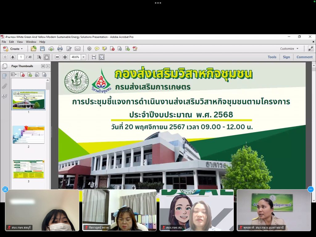 วันที่ 20 พฤศจิกายน 2567 นางพรทิพย์ ศรีสมโภชน์ เกษตรจังหวัดชลบุรี มอบหมายให้ นางสาวณัฐธิดา สหะวงศ์วัฒนา นักวิชาการส่งเสริมการเกษตรปฏิบัติการ กลุ่มส่งเสริมและพัฒนาเกษตรกร ร่วมประชุมชี้แจงการดำเนินงานส่งเสริมวิสาหกิจชุมชนตามโครงการ ประจำปีงบประมาณ พ.ศ. 2568 เวลา 09.00 – 12.00 น. ผ่านระบบออนไลน์ Zoom Meeting โดยมีนางวชิรา ไฝเจริญมงคล ผู้อำนวยการกองส่งเสริมวิสาหกิจชุมชน เป็นประธานการประชุม การประชุมครั้งนี้มีวัตถุประสงค์ เพื่อชี้แจงโครงการ งบประมาณ แผนการดำเนินงานส่งเสริมวิสาหกิจชุมชน ประจำปี พ.ศ. 2568 1. กิจกรรมพัฒนาศักยภาพวิสาหกิจชุมชน 2. กิจกรรมส่งเสริมและพัฒนาแหล่งเรียนรู้วิสาหกิจชุมชน 3. กิจกรรมส่งเสริมการสร้างมูลค่าเพิ่มผลิตภัณฑ์วิสาหกิจชุมชน 4. กิจกรรมส่งเสริมและพัฒนาการท่องเที่ยวเชิงเกษตร 5. กิจกรรมสนับสนุนการดำเนินงานตามพระราชบัญญัติส่งเสริมวิสาหกิจชุมชน พ.ศ. 2548
