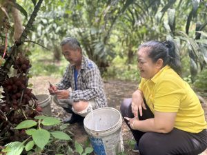 วันที่ 23 มิถุนายน 2568 เจ้าหน้าที่กลุ่มส่งเสริมและพัฒนาเกษตรกร สำนักงานเกษตรจังหวัดชลบุรี พร้อมด้วยเจ้าหน้าที่จากสำนักงานเกษตรอำเภอพานทอง ร่วมลงพื้นที่เยี่ยมเยียนเกษตรกรปราดเปรื่องต้นแบบ (Smart Famer Model : SFM) นายมนตรี เรืองศรี SFM ปี 2568 ด้านเกษตรผสมผสาน ตำบลมาบโป่ง อำเภอพานทอง จังหวัดชลบุรี โดยในการลงพื้นที่ครั้งนี้เป็นการนำผลการวิเคราะห์ดินและน้ำ ที่ได้จากการจัดเก็บในแปลงส้มโอ แจ้งแก่เกษตรกรทราบและได้ให้คำแนะนำแก่เกษตรกรในการจัดการสภาพดินและคุณภาพน้ำให้เหมาะสม แนะนำแผนการบำรุงดิน การใส่ปุ๋ยที่เหมาะสม เพื่อเกษตรกรสามารถนำไปปรับปรุงและพัฒนาพื้นที่การเกษตรของตน สามารถเป็นแหล่งเรียนรู้ในการถ่ายทอดความรู้ให้แก่้เกษตรกรรายอื่นๆ ที่สนใจได้ต่อไป