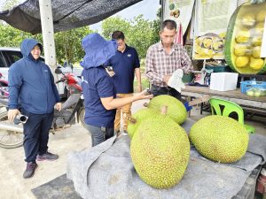 วันที่ 11 กรกฎาคม 2568 กลุ่มส่งเสริมและพัฒนาการผลิต สำนักงานเกษตรจังหวัดชลบุรี พร้อมด้วยเจ้าหน้าที่สำนักงานเกษตรอำเภอพนัสนิคม ลงพื้นที่เยี่ยมเยียนเกษตรกรผู้ปลูกขนุนหนองเหียง ณ ที่ทำการวิสาหกิจชุมชนแปลงใหญ่ขนุนหนองเหียง อำเภอพนัสนิคม จังหวัดชลบุรี