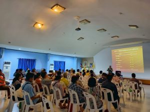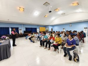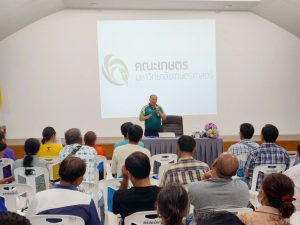 โดยมีเป้าหมายเกษตรกรผู้ปลูกมันสำปะหลังอำเภอบ้านบึง จำนวน 50 ราย ทั้งนี้ ได้รับเกียรติจาก อาจารย์ประภาส ช่างเหล็ก นักวิจัยระดับเชี่ยวชาญ จากศูนย์วิจัยและถ่ายทอดเทคโนโลยีการเกษตร คณะเกษตร มหาวิทยาลัยเกษตรศาสตร์ เป็นวิทยากรบรรยายให้ความรู้ และนำเกษตรกรศึกษาดูงานแปลงทดสอบพันธุ์มันสำปะหลังพันธุ์ต้านทานและทนทานต่อโรคใบด่างมันสำปะหลัง ณ แปลงทดสอบของนางสาวซัลฟา ศรีสอาด หมู่ 6 ตำบลหนองอิรุณ อำเภอบ้านบึง จังหวัดชลบุรี