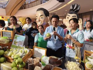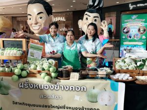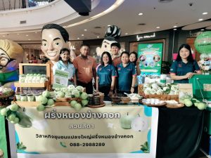 วันพฤหัสบดีที่ 24 กรกฎาคม 2568 เวลา 15.00 น. นางพรทิพย์ ศรีสมโภชน์ เกษตรจังหวัดชลบุรี ร่วมกับ “สวนสีดา” สมาชิกแปลงใหญ่ฝรั่งหนองข้างคอก อำเภอเมือง จังหวัดชลบุรี พร้อมด้วยหัวหน้ากลุ่มส่งเสริมและพัฒนาการผลิตและเกษตรอำเภอเมืองชลบุรี ขนขบวนนำฝรั่งสดจากสวน เปิดตัวผลไม้อัตลักษณ์จังหวัดชลบุรี “ฝรั่งหนองข้างคอก” ในงานครัวคุณต๋อยยกทัพ บุก เซ็นทรัลชลบุรี ณ ศูนย์การค้าเซ็นทรัล ชลบุรี บริเวณ ลานกิจกรรม ชั้น 1