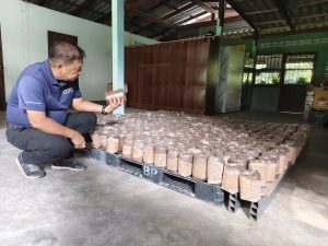 และวันเดียวกันนี้ ร่วมกับเกษตรอำเภอบ้านบึง ติดตามแปลงต้นแบบปาล์มน้ำมันจังหวัดชลบุรี (แปลงขนาดกลาง) ซึ่งเป็นโครงการภายใต้งบพัฒนาจังหวัดชลบุรี ปี 2567 ของนายภูไท สันติมานะวงศ์ ตำบลหนองอิรุณ อำเภอบ้านบึง จังหวัดชลบุรี แปลงต้นแบบระบบน้ำในปาล์มน้ำมัน และการเพิ่มประสิทธิภาพการผลิตปาล์มน้ำมันด้วยการเลี้ยงชันโรง