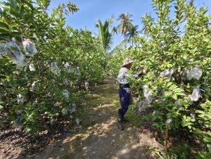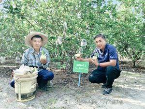 วันที่ 1 สิงหาคม 2568 นายรัตนะ สวัสดี หัวหน้ากลุ่มส่งเสริมและพัฒนาการผลิต ลงพื้นที่ติดตามแปลงเรียนรู้การผลิตไม้ผลอัตลักษณ์ที่ได้มาตรฐาน ภายใต้โครงการส่งเสริมและพัฒนาสินค้าเกษตรอัตลักษณ์พื้นถิ่นเพื่อเข้าสู่ห่วงโซ่อุปทานเศรษฐกิจสร้างสรรค์ ปี 2568 ของนายกุณฑล เชยสุนทร สมาชิกแปลงใหญ่ฝรั่งหนองข้างคอก อำเภอเมือง จังหวัดชลบุรี