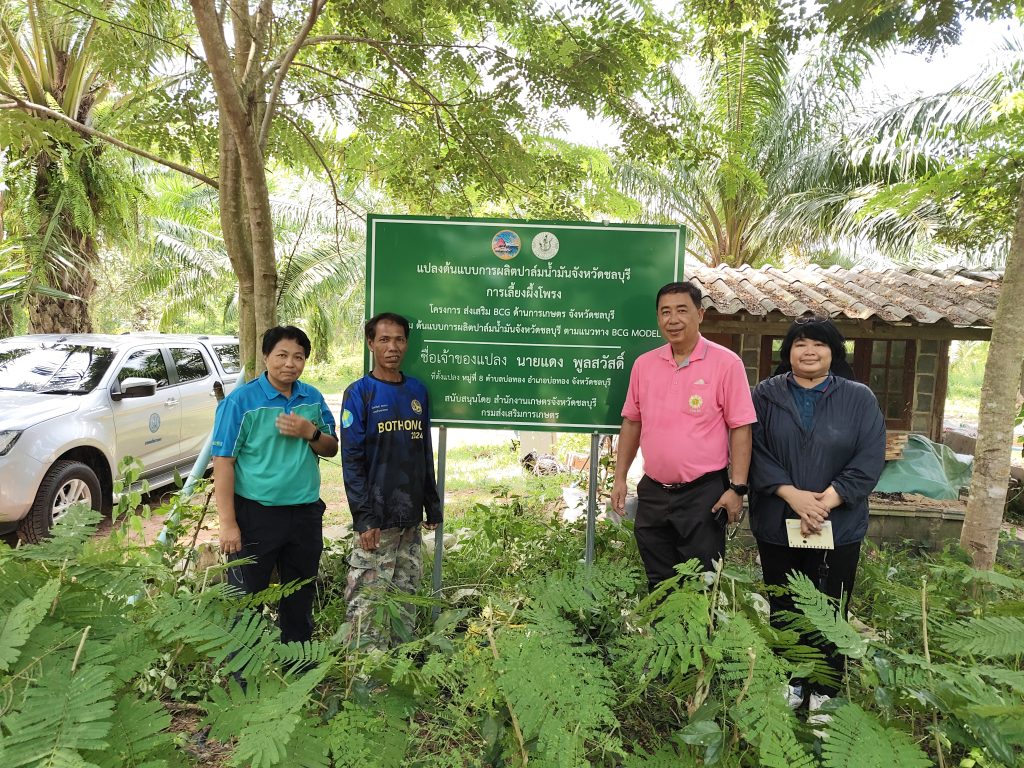 ซึ่งเป็นแนวทางการทำฟาร์มที่เน้นการฟื้นฟูและปรับปรุงระบบนิเวศ เพิ่มความหลากหลายทางชีวภาพและเพิ่มประสิทธิภาพในการผลิตทางการเกษตร ในขณะเดียวกันก็ลดผลกระทบต่อสิ่งแวดล้อมอีกด้วย โดยการส่งเสริมแปลงต้นแบบปาล์มน้ำมัน เป็นงบประมาณภายใต้งบพัฒนาจังหวัดชลบุรี ที่มุ่งสนับสนุนส่งเสริมให้เกษตรกรผู้ปลูกปาล์มน้ำมัน มีองค์ความรู้และศักยภาพการในการผลิตปาล์มน้ำมัน ยกระดับประสิทธิภาพทั้งด้านปริมาณการผลิตและคุณภาพ เพื่อก้าวสู่การผลิตปาล์มน้ำมันอย่างยั่งยืน