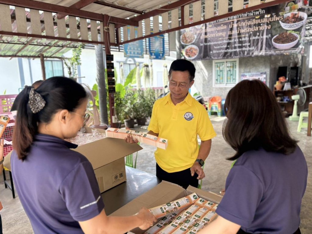 และติดตามเยี่ยมเยียนการดำเนินกิจกรรมแปรรูปน้ำพริกแกง อาทิ พริกแกงเผ็ด แกงเขียวหวาน แกงส้ม เป็นต้น พร้อมทั้งมอบกระปุกพลาสติกและสายคาดกระปุก 3 รส เพื่อนำไปต่อยอดเพิ่มกลุ่มเป้าหมายนักท่องเที่ยวต่อไป ณ วิสาหกิจชุมชนกลุ่มอาชีพเย็นฤดี ม.6 ต.สัตหีบ อ.สัตหีบ จ.ชลบุรี อำเภอสัตหีบ จังหวัดชลบุรี
