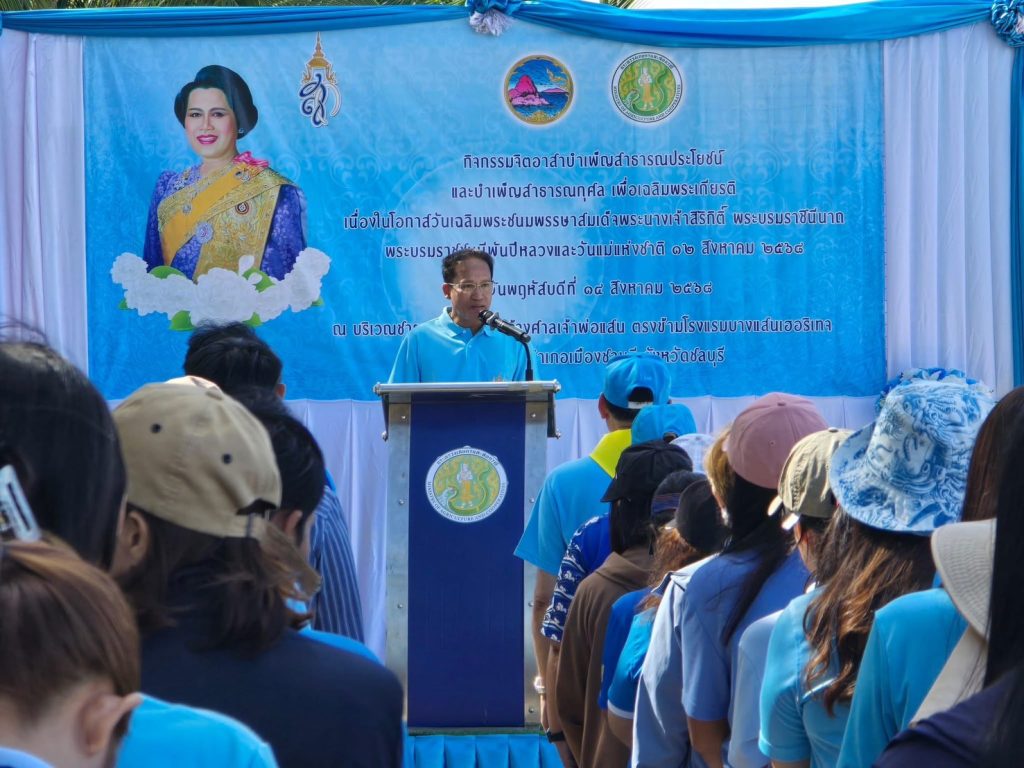 วันที่ 14 สิงหาคม 2568 นางพรทิพย์ ศรีสมโภชน์ เกษตรจังหวัดชลบุรี พร้อมด้วย นางสาวชลัยกร วิมลรัตน์ หัวหน้ากลุ่มยุทธศาสตร์และสารสนเทศ และเจ้าหน้าที่สำนักงานเกษตรจังหวัดชลบุรี เข้าร่วมกิจกรรมอาสาบำเพ็ญสาธารณประโยชน์และบำเพ็ญสาธารณกุศล เพื่อเฉลิมพระเกียรติ เนื่องในโอกาสวันเฉลิมพระชนมพรรษาสมเด็จพระนางเจ้าสิริกิติ์ พระบรมราชินีนาถ พระบรมราชชนนีพันปีหลวง และวันแม่แห่งชาติ 12 สิงหาคม 2568 ณ บริเวณชายหาดบางแสน ข้างศาลเจ้าพ่อแสน ตรงข้ามโรงแรมบางแสนเฮอริเทจ ตำบลแสนสุข อำเภอเมืองชลบุรี จังหวัดชลบุรี