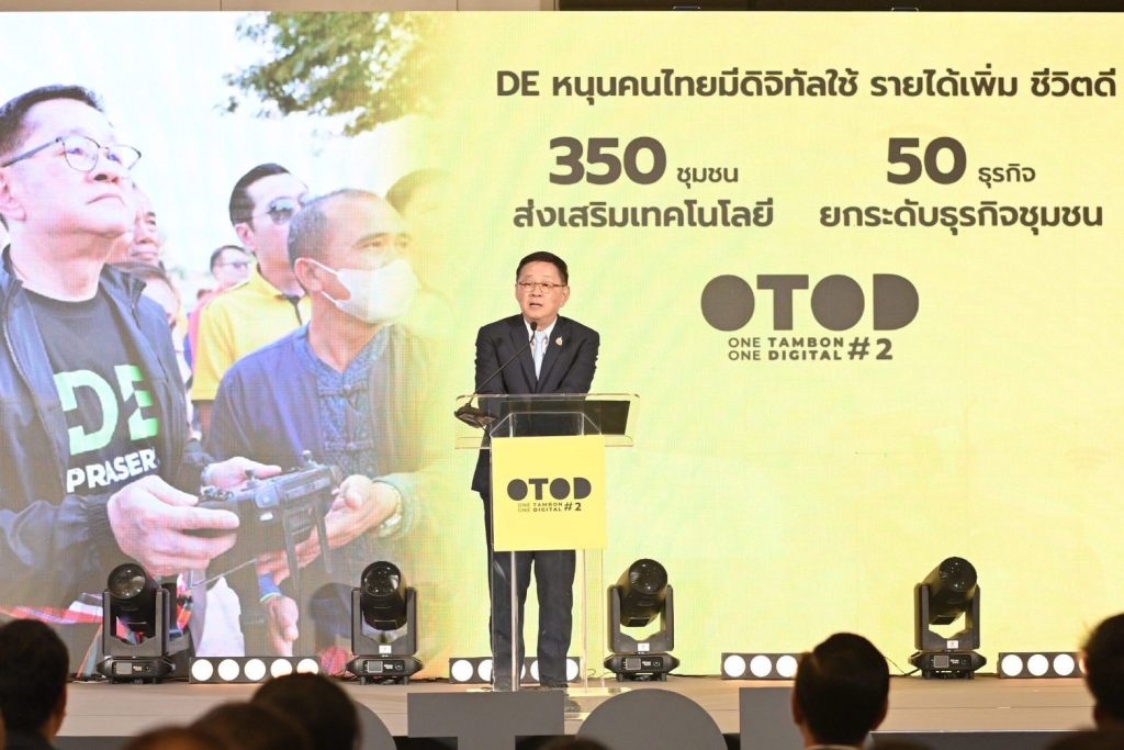 วันที่ 8 สิงหาคม 2568 รองนายกฯ ประเสริฐ จันทรรวงทอง ให้เกียรติมอบรางวัลแก่กลุ่มชุมชนและธุรกิจชุมชน ผู้ชนะจากเวที Digital Agriculture Final Pitching Day ในโครงการ OTOD#2 ชิงทุนสนับสนุนการประยุกต์ใช้เทคโนโลยีดิจิทัล ชี้ OTOD#2 มุ่งยกระดับคุณภาพชีวิตเกษตรกร ช่างชุมชน และกลุ่มชุมชน พร้อมเปลี่ยนผ่านเกษตรแบบดั้งเดิมสู่เกษตรอัจฉริยะด้วยเทคโนโลยีโดรนเพื่อการเกษตร – แทรกเตอร์การเกษตรอัจฉริยะ – IoT ภาคการเกษตรอัจฉริยะ คาดสร้างมูลค่าทางเศรษฐกิจไม่ต่ำกว่า 500 ล้านบาทต่อปี พร้อมประกาศเดินหน้าโครงการ OTOD AI Transformation ช่วยชาติ และ OTOD ทุเรียนดิจิทัล ดันเศรษฐกิจดิจิทัลไทยเต็มสูบ