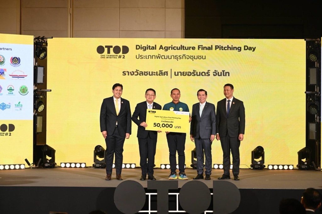 สำหรับกิจกรรม Digital Agriculture Final Pitching Day เป็นเวทีตัดสินสุดยอดโครงการยกระดับชุมชนเพื่อสร้างการเปลี่ยนแปลงสังคมด้วยเทคโนโลยีดิจิทัลที่เปิดโอกาสให้กลุ่มชุมชนและธุรกิจชุมชนจาก 5 ภูมิภาคได้โชว์ศักยภาพ แบ่งเป็น 2 ประเภท ประกอบด้วย 1. ประเภทกลุ่มชุมชนประยุกต์ใช้เทคโนโลยี จำนวน 350 ราย รับการส่งเสริมสนับสนุนสูดสุด 150,000 บาทต่อโครงการ และ 2. ประเภทพัฒนาธุรกิจชุมชน จำนวน 50 ราย รับการส่งเสริมสนับสนุนสูงสุด 200,000 บาทต่อโครงการ พร้อมกันนี้ยังมีรางวัลดีเด่นสำหรับสุดยอดโครงการของทั้ง 2 ประเภท อีก 3 รางวัล รวมทั้งสิ้น 6 รางวัล โดยทีมชนะเลิศได้รับรางวัลมูลค่า 50,000 บาท รองชนะเลิศอันดับที่ 1 รับรางวัลมูลค่า 30,000 บาท และรองชนะเลิศอันดับที่ 2 รับรางวัลมูลค่า 20,000 บาท ซึ่งทีมที่ได้รับรางวัลดีเด่นประเภทกลุ่มชุมชนประยุกต์ใช้เทคโนโลยีคือ วิสาหกิจชุมชนหอมเชียงม่วนภาคเหนือ และทีมที่ได้รับรางวัลดีเด่นประเภทพัฒนาธุรกิจชุมชนคือ นายอรันดร์ จันโท YSF ชลบุรี