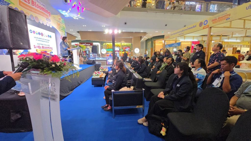 วันที่ 9 สิงหาคม 2568 นางสาววราภรณ์ เฮงไล้ หัวหน้ากลุ่มส่งเสริมและพัฒนาเกษตรกร เข้าร่วมพิธีเปิดงาน “EASTERN THAILAND SMEs Blooming Fair” ณ ลานกิจกรรม ชั้น G ศูนย์การค้าเซ็นทรัล ศรีราชา จังหวัดชลบุรี โดยมีนางเอกอนงค์ บัวมาศ พาณิชย์จังหวัดชลบุรี เป็นประธานเปิดงาน
