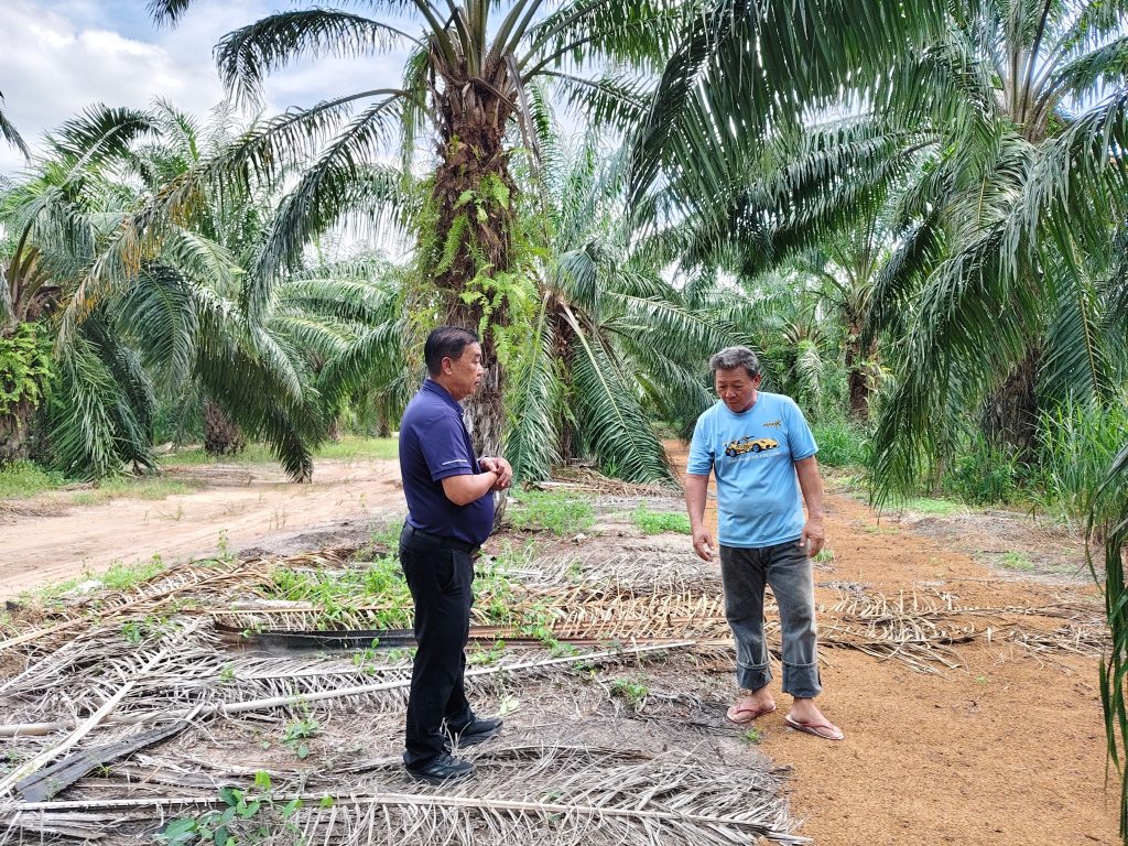 วันที่ 15 สิงหาคม 2568 นายรัตนะ สวัสดี หัวหน้ากลุ่มส่งเสริมและพัฒนาการผลิต พร้อมด้วยเจ้าหน้าที่สำนักงานเกษตรอำเภอหนองใหญ่ ลงพื้นที่ติดตามเกษตรกรผู้ปลูกปาล์มน้ำมันที่ผ่านการอบรมส่งเสริมกลุ่มเกษตรกรผลิตปาล์มน้ำมันอย่างยั่งยืนตามมาตรฐานสากล เตรียมความพร้อมกลุ่มเข้าสู่มาตรฐาน RSPO ภายใต้กิจกรรมเพิ่มประสิทธิภาพการผลิตปาล์มน้ำมันอย่างยั่งยืนตามมาตรฐานสากล โครงการทดสอบและถ่ายทอดเทคโนโลยีเพื่อเพิ่มผลิตภาพการผลิตสินค้าเกษตร ประจำปีงบประมาณ พ.ศ. 2568 ในพื้นที่อำเภอหนองใหญ่ จังหวัดชลบุรี