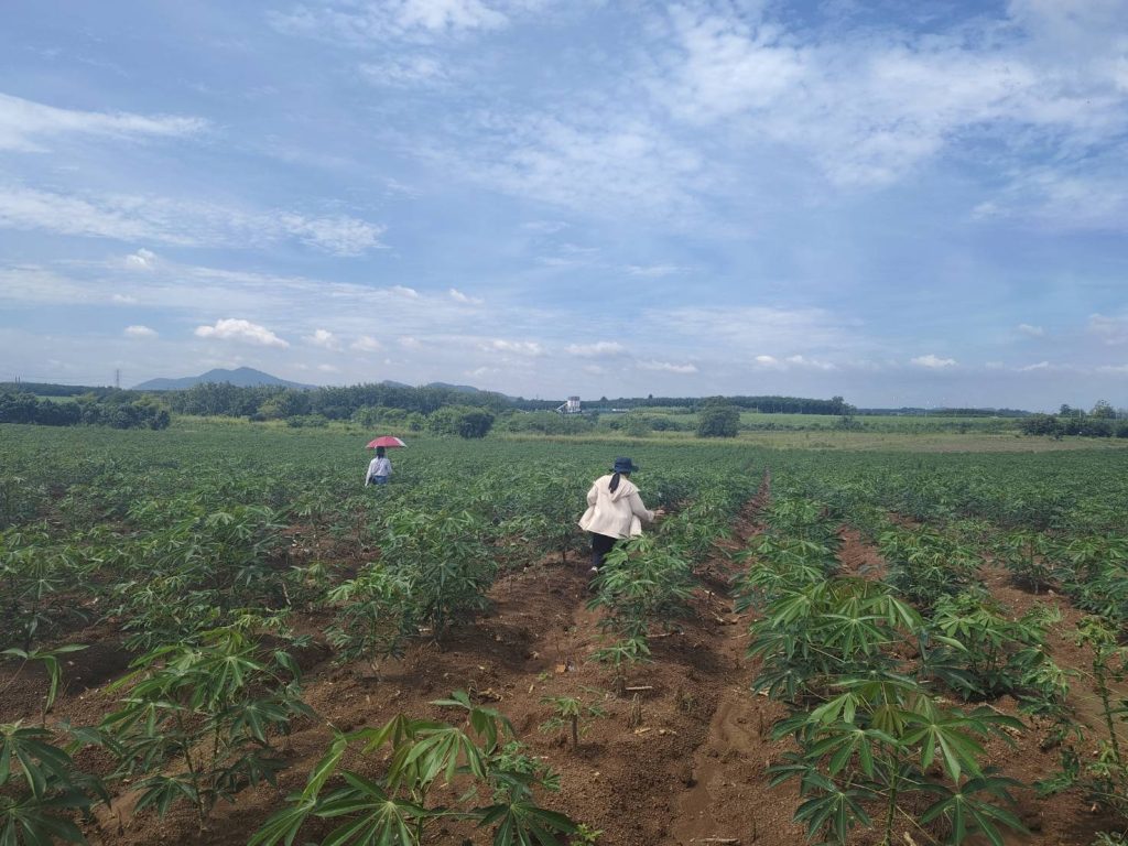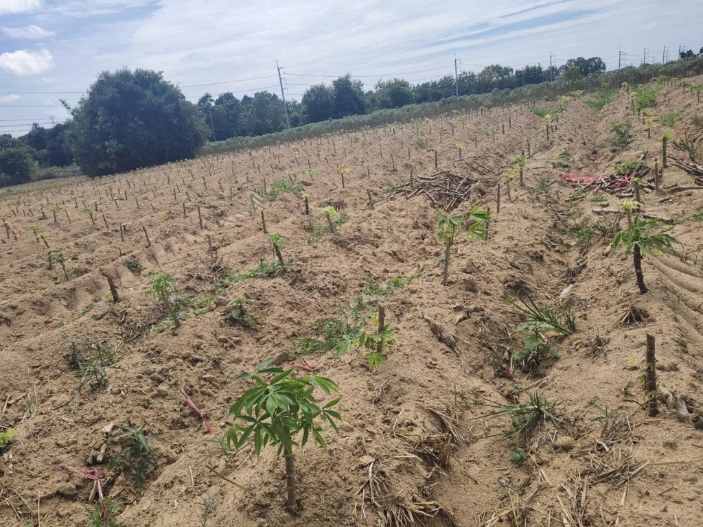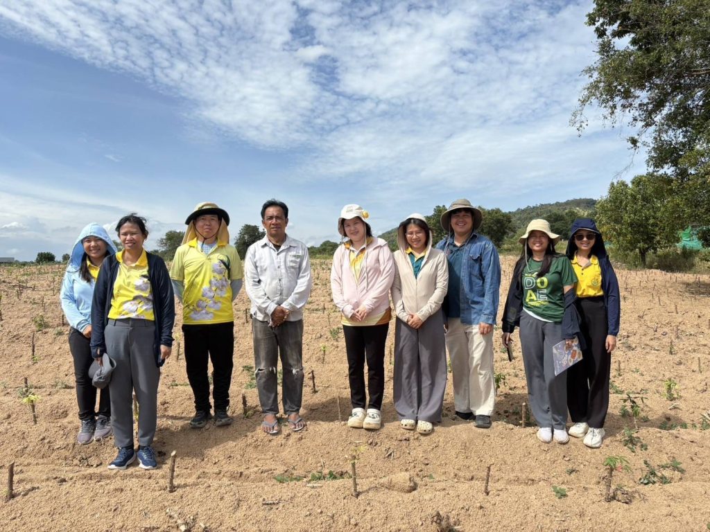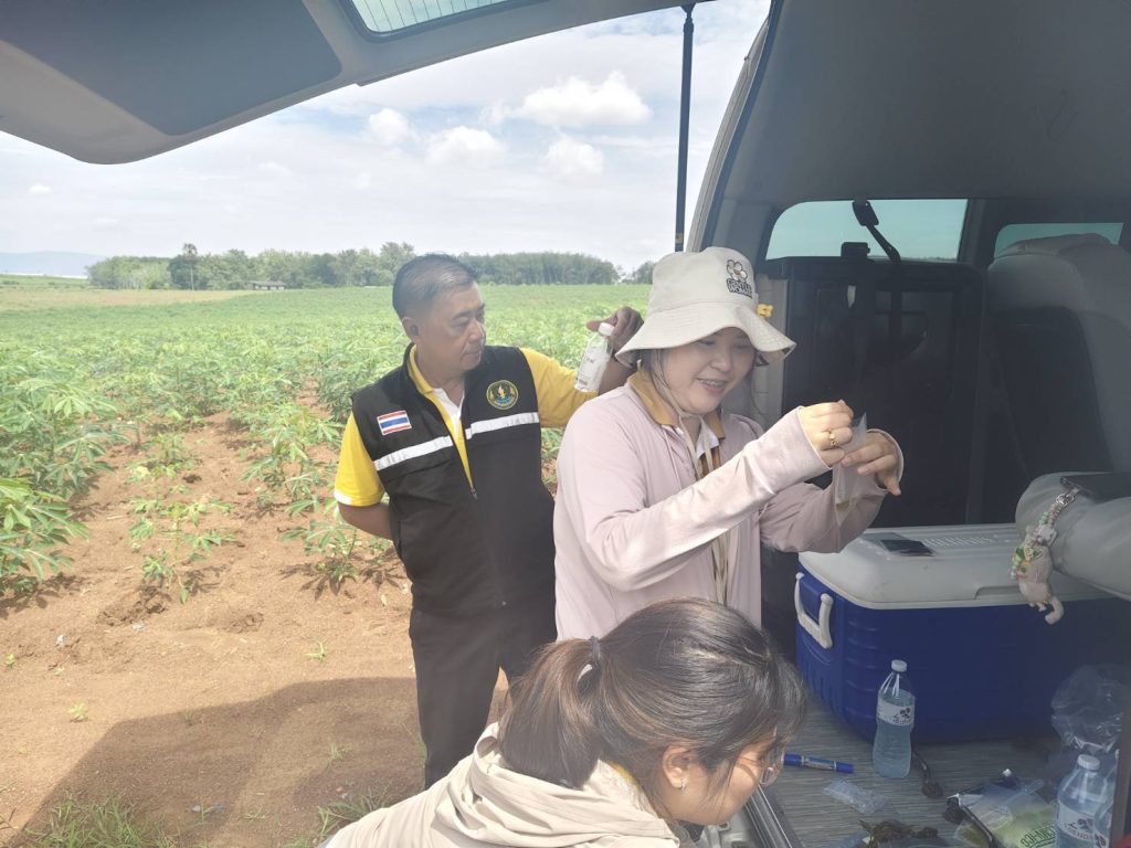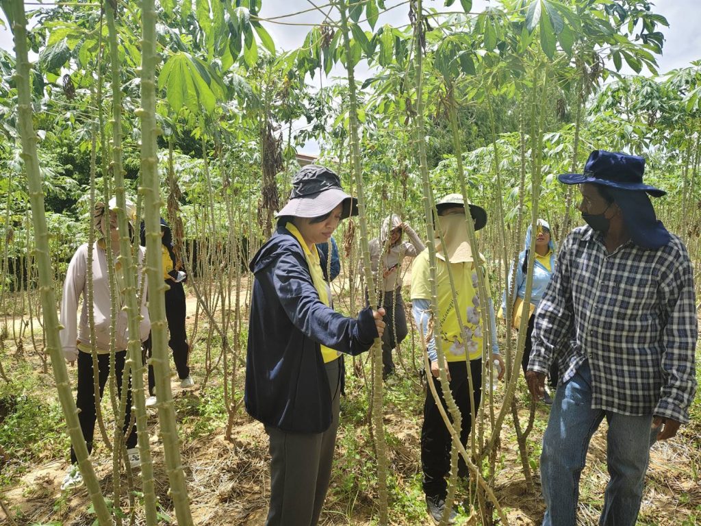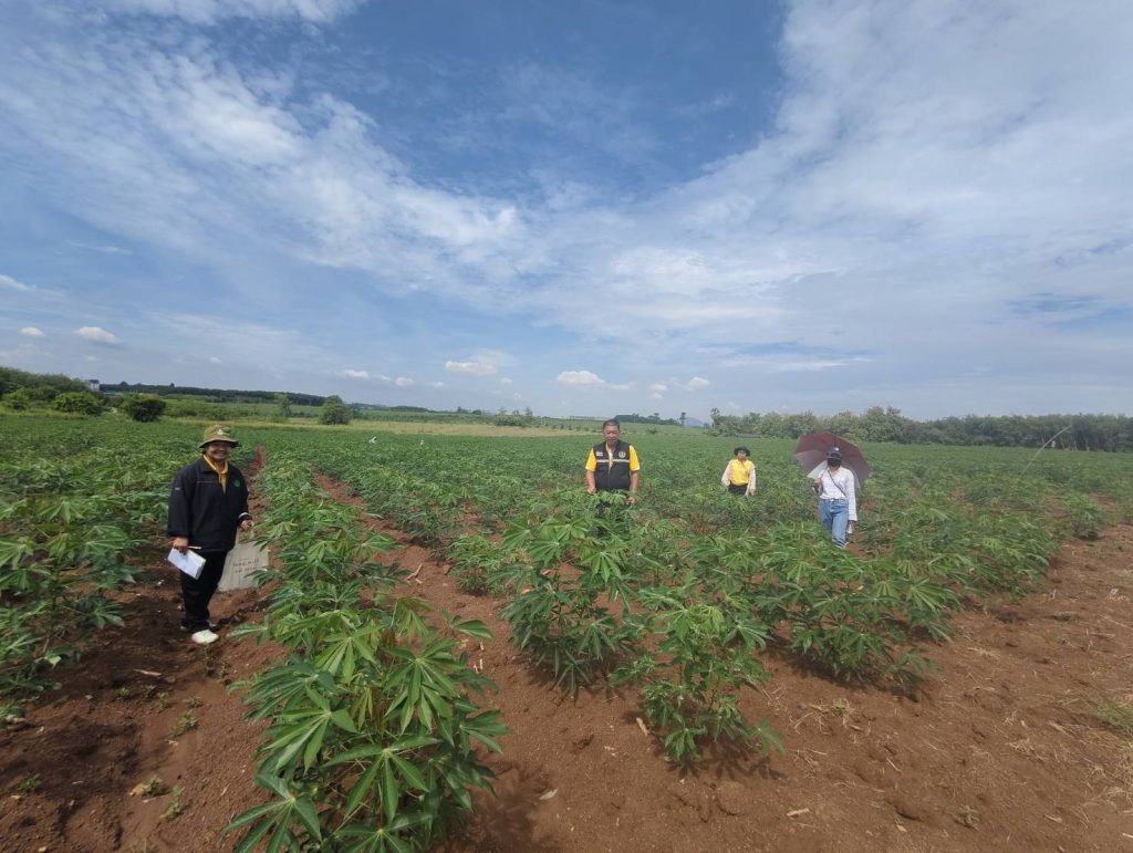 วันที่ 18 สิงหาคม 2568 สำนักงานเกษตรจังหวัดชลบุรี ร่วมกับสำนักงานเกษตรอำเภอบางละมุง และสำนักงานเกษตรอำเภอหนองใหญ่ ลงพื้นที่สำรวจโรคใบด่างมันสำปะหลังในแปลพันธุ์ดีเพื่อเพิ่มผลิตภาพการผลิตมันสำปะหลัง ภายใต้โครงการระบบส่งเสริมเกษตรแบบแปลงใหญ่เพื่อปรับเพิ่มผลิตภาพการผลิต ณ ตำบลโป่ง อำเภอบางละมุง จังหวัดชลบุรี