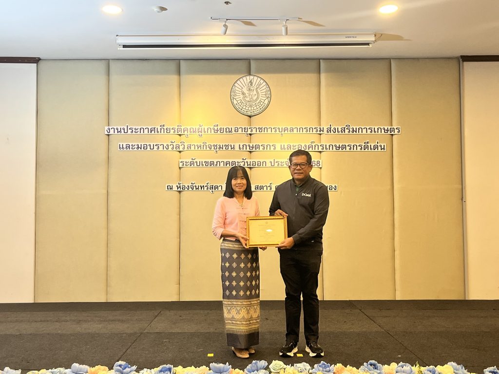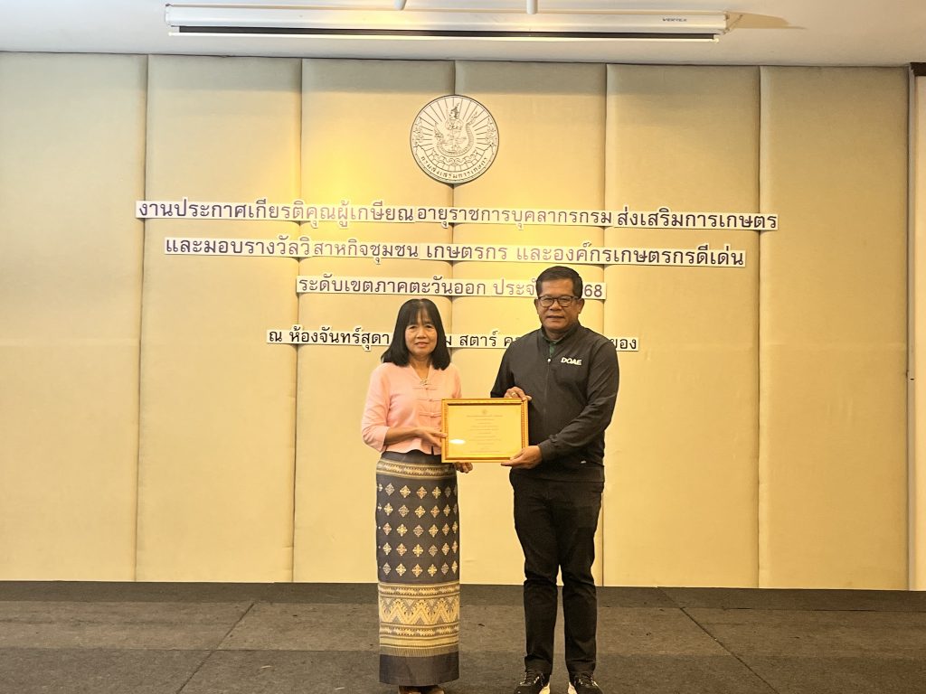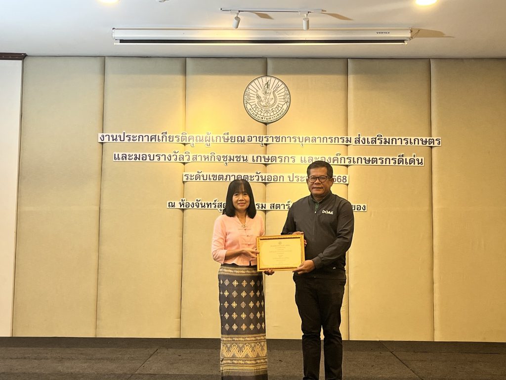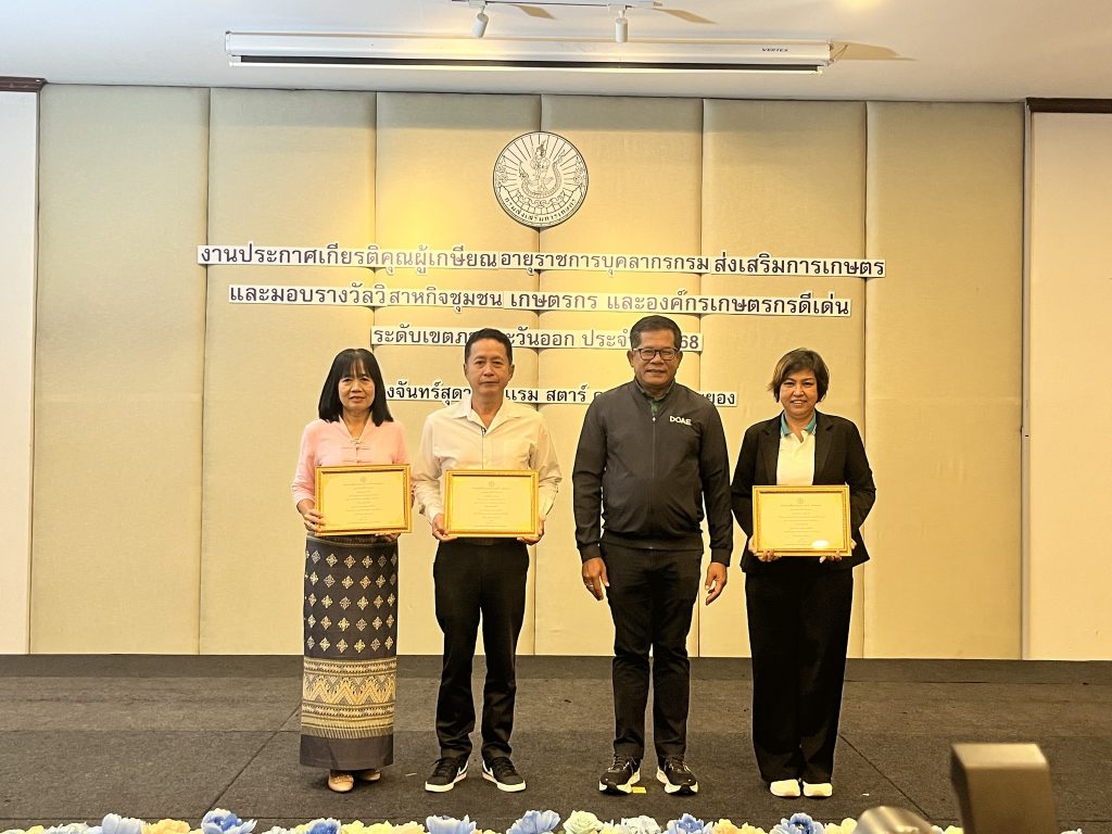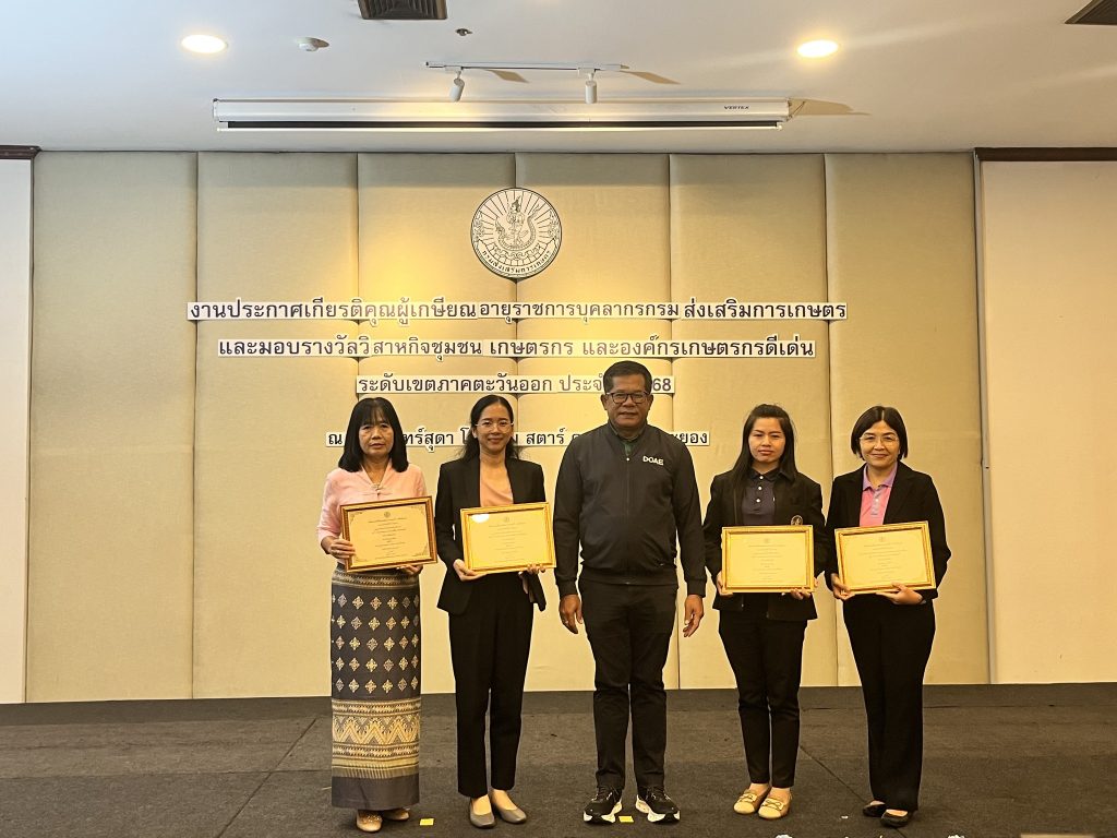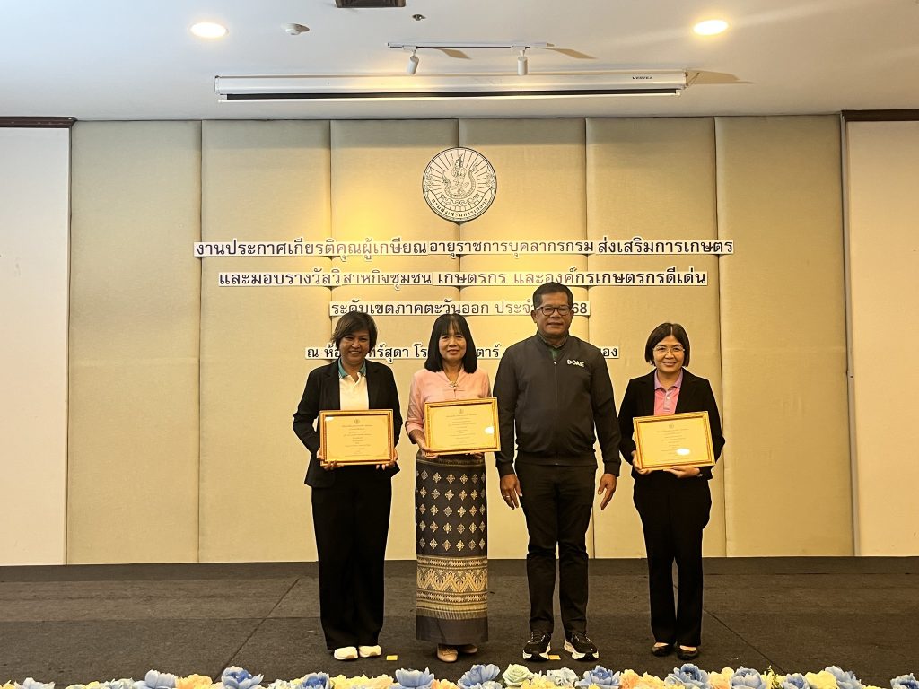 จังหวัดชลบุรี ได้รับรางวัลการประกวดวิสาหกิจชุมชน เกษตรกร และองค์กรเกษตรกร ระดับเขตภาคตะวันออก ปี 2568 ดังนี้