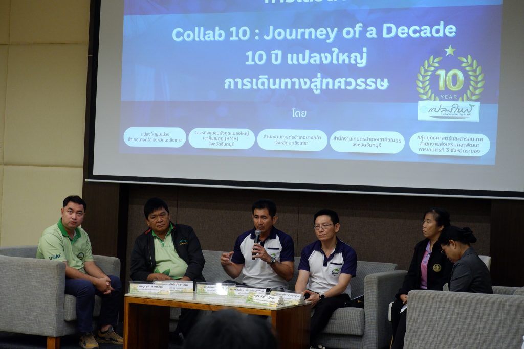 1. การเสวนา ภายใต้หัวข้อ “Collab 10 : Journey of a Decade – 10 ปี แปลงใหญ่การเดินทางสู่ทศวรรษ” โดยเกษตรกรแปลงใหญ่มะม่วง จังหวัดฉะเชิงเทรา วิสาหกิจชุมชนมังคุดแปลงใหญ่คิชฌกูฏ จังหวัดจันทบุรี เจ้าหน้าที่สำนักงานเกษตรอำเภอบางคล้า จังหวัดฉะเชิงเทรา สำนักงานเกษตรอำเภอเขาคิชฌกูฏ ดำเนินการเสวนาโดย นางสาวอิสรี เก่งนอก ผู้อำนวยการกลุ่มยุทธศาสตร์และสารสนเทศ