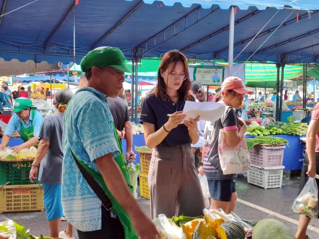 วันที่ 5 กันยายน 2568 นางสาววราภรณ์ เฮงไล้ หัวหน้ากลุ่มส่งเสริมและพัฒนาเกษตรกร พร้อมด้วยเจ้าหน้าที่กลุ่มส่งเสริมและพัฒนาเกษตรกร ลงพื้นที่ติดตามการดำเนินงาน “ตลาดเกษตรกรจังหวัดชลบุรี” ณ สนามหน้าที่ว่าการอำเภอเมืองชลบุรี เพื่อสัมภาษณ์ และจัดเก็บข้อมูลทะเบียนการจำหน่ายสินค้า เพื่อนำไปใช้เป็นฐานข้อมูลสำคัญในการพัฒนาตลาดเกษตรกรจังหวัดชลบุรีให้มีความเข้มแข็งมากยิ่งขึ้น