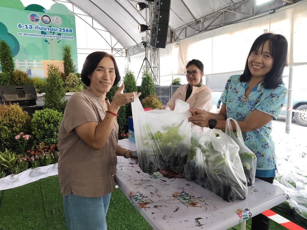 วันที่ 9 กันยายน 2568 นางพรทิพย์ ศรีสมโภชน์ เกษตรจังหวัดชลบุรี ร่วมส่งมอบต้นพันธุ์พืชผักสวนครัว ให้กับประชาชนที่มาร่วมงานชลบุรีแฟร์ 2568 บริเวณลานกิจกรรมหน้าเวทีกลาง สนามหน้าศาลากลางจังหวัดชลบุรี จัดขึ้นตั้งแต่วันที่ 6-13 กันยายน 2568 ภายในงานเตรียมต้นพันธุ์พืชผักสวนครัว กว่า 5,000 ต้น และพันธุ์ไม้ผล อาทิ ชมพู่ และมะขามเปรี้ยวยักษ์ กว่า 2,000 ต้น พร้อมสนับสนุนให้กับเกษตรกรตลอดจนประชาชนที่มาร่วมงาน