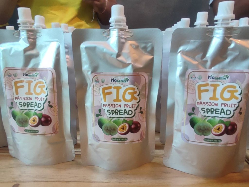 ผลิตภัณฑ์สเปรดทาขนมปัง Fig Passion Fruit Spread ได้รับการเสนอจากวิสาหกิจชุมชนที่มองเห็นโอกาสในการพัฒนาผลไม้ที่มีคุณประโยชน์ด้านของการมีวิตามินและแร่ธาตุที่สูง นำมาต่อยอดพัฒนาแปรรูปเป็นผลิตภัณฑ์ที่เข้าได้ถึงทุกเพศทุกวัย และกลุ่มลูกค้าที่รักสุขภาพ ซึ่งผลิตภัณฑ์ดังกล่าวได้พัฒนาจากมะเดื่อฝรั่งและเสาวรสที่ปลูกในสวนมาทำเป็นสเปรดทาขนมปัง ที่มีรสชาติเปรี้ยวหวานกลมกล่อม และรูปแบบถุงบรรจุภัณฑ์ Spout ทำให้ใช้งานง่าย สะดวก พกพาไปได้ทุกที่ ภายใต้แบรนด์ TheFIGnature Garden หากสนใจสามารถซื้อได้ทั้งแบบหน้าร้าน และแบบอออนไลน์ ซึ่งในเร็วนี้จะมีการนำมาจำหน่ายในร้าน modern trade ต่อไป