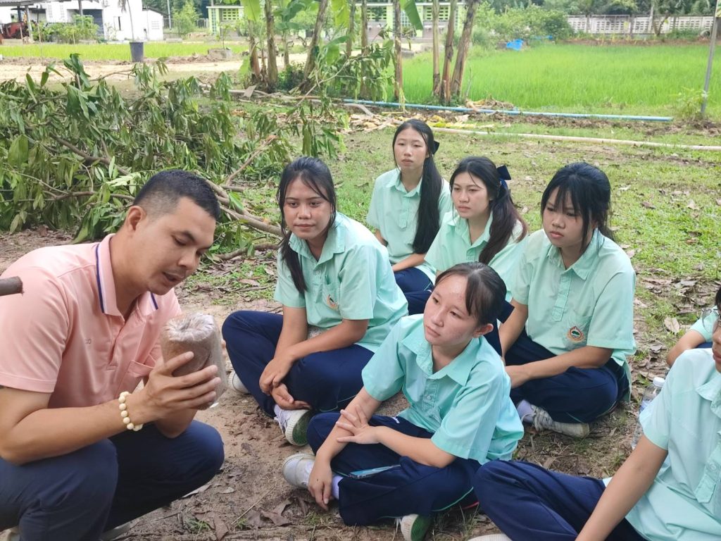 วันที่ 17 กันยายน 2568 เจ้าหน้าที่กลุ่มส่งเสริมและพัฒนาเกษตรกร ร่วมกับ นายสุทธิพงษ์ อินต๊ะวงศฺ์ เกษตรกรรุ่นใหม่ YSF เจ้าของศูนย์เรียนรู้บ้านเห็ดขอนสุทธิพงษ์ เข้าถ่ายทอดกระบวนการผลิตเห็ด ตั้งแต่การทำก้อนเชื้อเห็ด การบ่มเส้นใย การเปิดก้อนเห็ดชนิดต่างๆ ให้กับกลุ่มยุวเกษตรกรโรงเรียนทุ่งเหียงพิทยาคม โดยได้เข้าร่วมโครงการยุวธนากรของธนาคารเพื่อการเกษตรและสหกรณ์การเกษตร ธ.ก.ส.