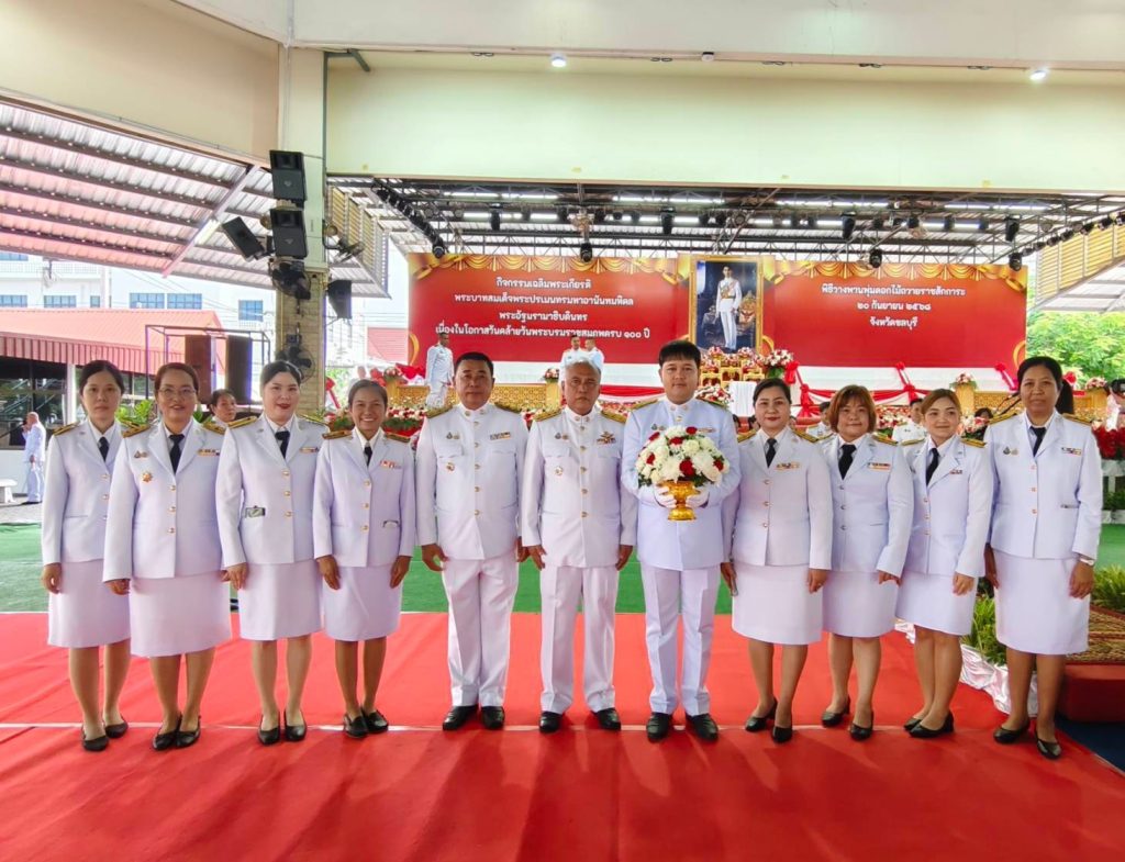 วันที่ 20 กันยายน 2568 เวลา 08.30 น. นายรัตนะ สวัสดี หัวหน้ากลุ่มส่งเสริมและพัฒนาการผลิตพร้อมด้วยคณะเจ้าหน้าที่ พิธีวางการพุ่มดอกไม้ถวายราชสักการะ พระบาทสมเด็จพระปรเมนทรมหาอนันทมหิดล พระอัฐมรามาธิบดินทร เนื่องในโอกาสวันคล้ายวันพระบรมราชสมภพครบ 100 ปี ที่โรงเรียนชลกันยานุกูล ต.บางปลาสร้อย อ.เมือง จ.ชลบุรี ในนามของหน่วยงานสังกัดกระทรวงเกษตรและสหกรณ์ โดยมีนายธวัชชัย ศรีทอง ผู้ว่าราชการจังหวัดชลบุรี เป็นประธานพิธี