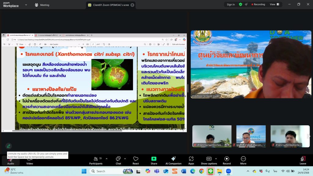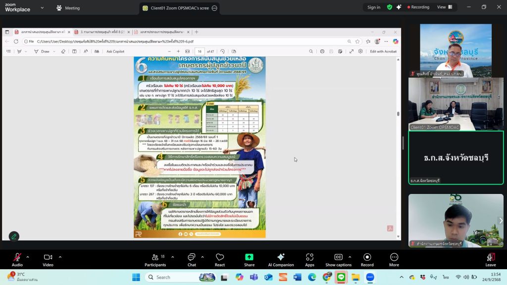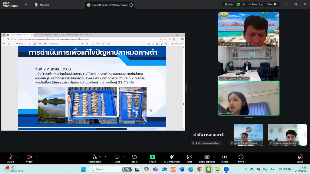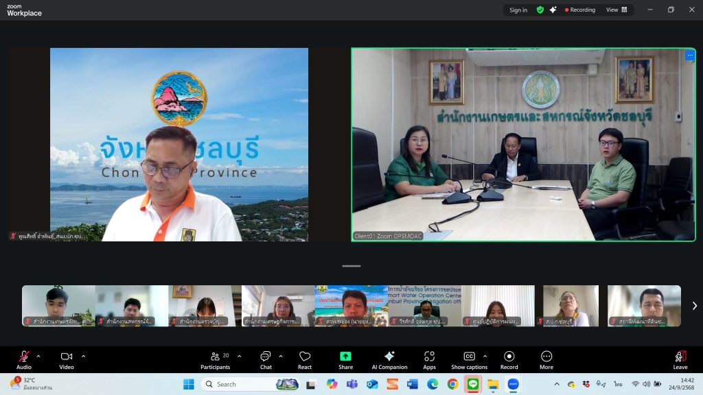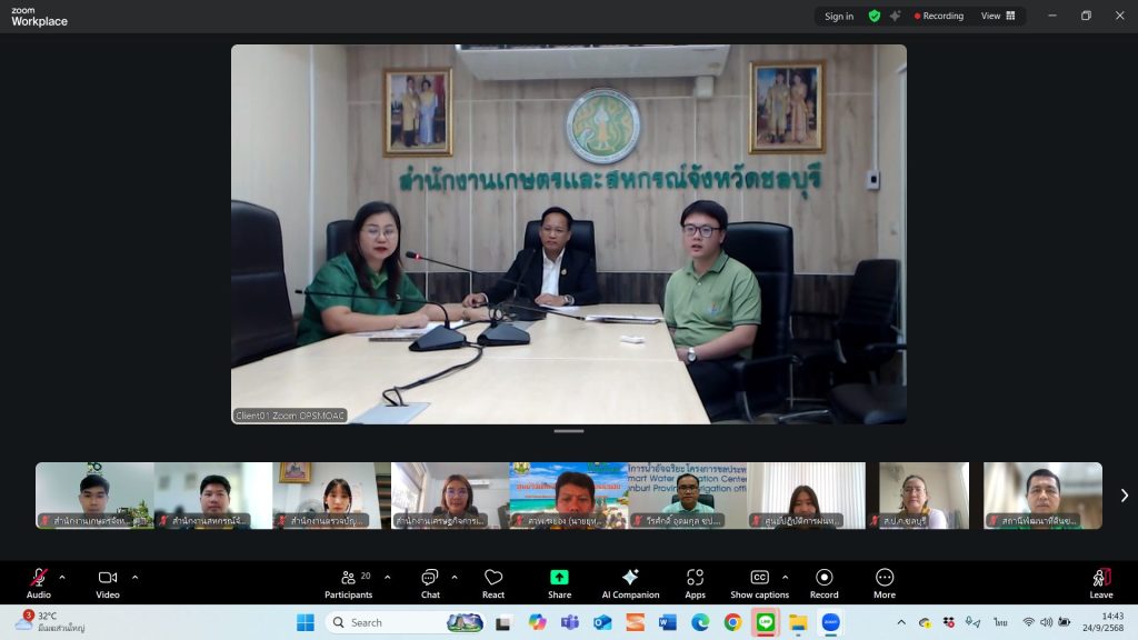 วันที่ 24 กันยายน 2568 นายธวัชชัย พินิจใหม่ นักวิชาการส่งเสริมการเกษตรชำนาญการ กลุ่มส่งเสริมและพัฒนาเกษตรกร เข้าร่วมประชุมคณะกรรมการศูนย์ติดตามภัยพิบัติด้านการเกษตรจังหวัดชลบุรีครั้งที่ 9 ผ่านระบบ Zoom Meeting โดยมี นายชานนท์ สีสด เกษตรและสหกรณ์จังหวัดชลบุรี เป็นประธานการประชุม