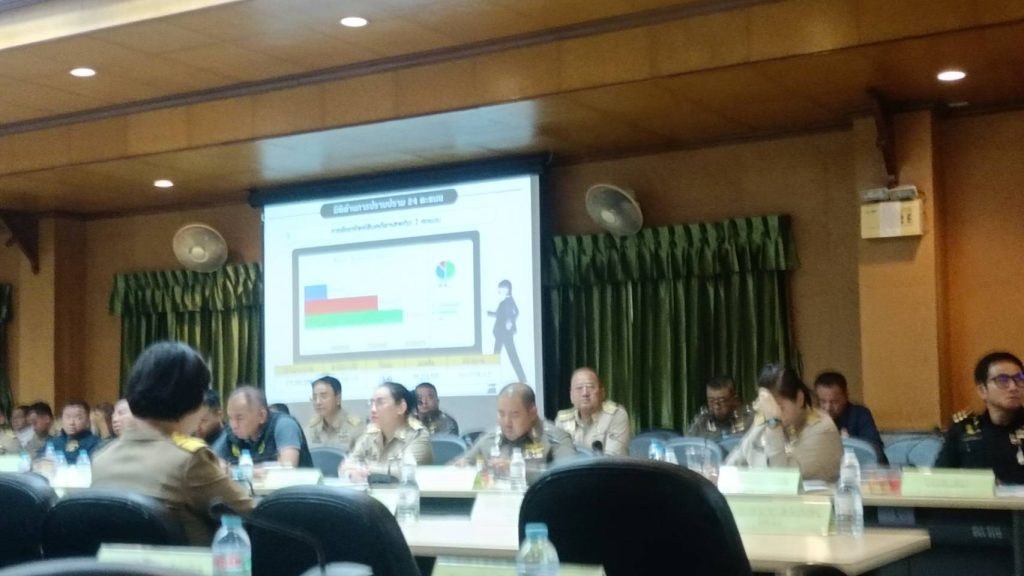 ที่ประชุมได้รายงานสถานการณ์และผลการดำเนินงานด้านความมั่นคงและความสงบเรียบร้อยในพื้นที่จังหวัดชลบุรี สถานการณฺ์และสถิติคดีอาชญากรรม การติดตามความคืบหน้า คดีอุกฉกรรจ์ สะเทือนขวัญ และคดีที่สำคัญ ที่เป็นข่าวสารตามสื่อ Social Media ในพื้นที่จังหวัดชลบุรี รายงานผลการแก้ไขปัญหาอาชญากรรม และการบังคับใช้กฎหมายในทุกกรณีที่เป็นกิจกรรมที่ไม่พึงประสงค์ในพื้นที่ การปราบปรามการบุหรี่ไฟฟ้า บุหรี่ผิดกฎหมาย ตามพรบ.ภาษีสรรพสามิต 2560 การค้ามนุษย์ รายงานผลการดำเนินงานการดูแลความปลอดภัยของนักท่องเที่ยว รายงานผลสถิติคดีเกี่ยวกับป่าไม้และการแก้ไขปัญหาภัยจากช้างป่า