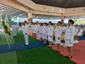 นายรัตนะ สวัสดี นักวิชาการส่งเสริมการเกษตรชำนาญการพิเศษ รักษาราชการแทนเกษตรจังหวัดชลบุรี ร่วมพิธีวางพวงมาลาถวายราชสักการะ เนื่องในวันคล้ายวันสวรรคต พระบาทสมเด็จพระบรมชนกาธิเบศร มหาภูมิพลอดุลยเดชมหาราช บรมนาถบพิตร เนื่องใน “วันนวมินทรมหาราช” 13 ตุลาคม 2567 ที่อาคารอเนกประสงค์วิทยาการ โรงเรียนชลกันยานุกูล อำเภอเมืองชลบุรี จังหวัดชลบุรี โดยมีนายธวัชชัย ศรีทอง ผู้ว่าราชการจังหวัดชลบุรี พร้อมด้วย นางสาวประภัสรา ศรีทอง นายกเหล่ากาชาดจังหวัดชลบุรี นำข้าราชการ ทหาร ตำรวจ ศาลตุลาการ รัฐวิสาหกิจ องค์กรปกครองส่วนท้องถิ่น และพ่อค้าประชาชนทุกหมู่เหล่า ร่วมพิธีโดยพร้อมเพรียงกัน