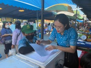 วันที่ 22 พฤศจิกายน 2567 นางพรทิพย์ ศรีสมโภชน์ เกษตรจังหวัดชลบุรี มอบหมายให้ นางสาวอัญชัญ อยู่สะบาย นักวิชาการส่งเสริมการเกษตรชำนาญการ และเจ้าหน้าที่กลุ่มส่งเสริมและพัฒนาเกษตรกร ลงพื้นที่สัมภาษณ์เกษตรกรผู้จำหน่ายสินค้าในตลาดเกษตรกรจังหวัดชลบุรี