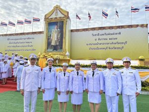 วันที่ 5 ธันวาคม 2567 นางพรทิพย์ ศรีสมโภชน์ เกษตรจังหวัดชลบุรี มอบหมายให้ นางสาววราภรณ์ เฮงไล้ หัวหน้ากลุ่มส่งเสริมและพัฒนาเกษตรกร และเจ้าหน้าที่ ร่วมพิธีวางพานพุ่มดอกไม้ถวายสักการะ เนื่องในวันคล้ายวันพระราชสมภพ พระบาทสมเด็จพระบรมชนหาธิเบศร มหาภูมิพลอดุลยเดชมหาราช บรมนาถบพิตร วันชาติ และวันพ่อแห่งชาติ 5 ธันวาคม 2567 ณ สนามหน้าศาลากลางจังหวัดชลบุรี อำเภอเมืองชลบุรี จังหวัดชลบุรี