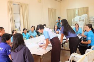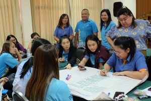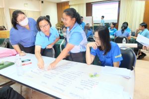 นอกจากนี้ มีกิจกรรมแบ่งกลุ่ม แลกเปลี่ยนเรียนรู้ข้อมูลความเสี่ยง และแนวทางบริหารจัดการเพื่อลดความเสี่ยงองค์กร ซึ่งเป็นการแลกเปลี่ยนกันระหว่างเจ้าหน้าที่จังหวัดและอำเภอในแต่ละกลุ่มงาน เพื่อให้แนวทางการลดความเสี่ยงที่จะเกิดขึ้นในอนาคต