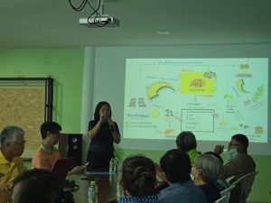 การดำเนินกิจกรรมในครั้งนี้ มีการบรรยายขั้นตอนและวิธีการแปรรูปกล้วยน้ำว้าให้ได้มาตรฐานและเพิ่มมูลค่า กระบวนการขอรับการสนับสนุนจากหน่วยงานต่างๆ การดำเนินงานของกลุ่ม ความสำคัญของมาตรฐานของสินค้าเกษตรและความปลอดภัยของอาหาร โดยได้รับเกียรติจากเจ้าหน้าที่กลุ่มส่งเสริมและพัฒนาเกษตรกร สำนักงานเกษตรจังหวัดราชบุรี เจ้าหน้าที่สำนักงานเกษตรอำเภอบางแพ นำโดย นางสาวปิยรักษ์ รัศมี เกษตรอำเภอบางแพ ร่วมกับ นายคะนอง โปรักษ์ ประธานวิสาหกิจชุมชนบ้านกุ่มพัฒนา ให้การต้อนรับและเป็นวิทยากรในครั้งนี้