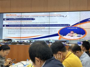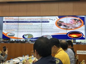 – โดยออกหน่วยบริการให้คำแนะนำข้อปฏิบัติในการป้องกันตนเอง จัดหาอุปกรณ์ป้องกันฝุ่นละอองขนาดเล็ก จัดเตรียมพื้นที่ปลอดภัย (Safety Zone) ห้องปลอดฝุ่น คลินิกมลพิษ ไว้บริการประชาชน เป็นต้น หากสถานการณ์มีแนวโน้มรุนแรงต่อเนื่องให้พิจารณาประกาศใช้มาตรการ Work Form Home อย่างจริงจัง