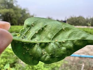 วันที่ 14 กุมภาพันธ์ 2568 นางพรทิพย์ ศรีสมโภชน์ เกษตรจังหวัดชลบุรี มอบหมายให้มอบหมายให้นายชนายุส ฐิติอุดมรักษ์ นักวิชาการส่งเสริมการเกษตรชำนาญการ และนางสาววรรณิกา จินะการ นักวิชาการส่งเสริมการเกษตรปฏิบัติการ พร้อมด้วยเจ้าหน้าที่สำนักงานเกษตรอำเภอบ้านบึง ลงพื้นที่สำรวจโรคและแมลงศัตรูพืชในพริก ซึ่งพบการระบาดของเพลี้ยอ่อน แมลงหวี่ขาว และโรคใบด่างในพริก โดยเจ้าหน้าที่ได้แนะนำการจัดการศัตรูพืชในพริกแบบผสมผสาน (IPM) ที่เหมาะสมกับสถานการณ์ของเกษตรกร ณ หมู่ 1 ตำบลคลองกิ่ว อำเภอบ้านบึง จังหวัดชลบุรี