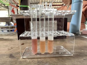 ภายในกิจกรรมได้มีการประเมินพฤติกรรมและต้นทุนการใช้สารเคมีป้องกันกำจัดศัตรูพืชของเกษตรกร ก่อนเข้าร่วมโครงการ เพื่อวิเคราะห์พฤติกรรมของเกษตรกรว่ามีความเสี่ยงต่อการใช้สารเคมีป้องกันกำจัดศัตรูพืชผิดวิธีหรือไม่ถูกต้องที่ส่งผลกระทบต่อสุขภาพและความปลอดภัยของผลผลิต มีการจัดทำปฏิทินการปลูกพืช (Crop calendar) และปฏิทินการระบาดของศัตรูพืชที่คาดว่าจะพบในระหว่างฤดูกาลเพาะปลูก เพื่อพิจารณาความเสี่ยงที่อาจเกิดขึ้นในอนาคต และมีการถ่ายทอดความรู้ในด้านการจัดการดินและปุ๋ย โดยวิทยากรจากสถานีพัฒนาที่ดินจังหวัดชลบุรี มีการตรวจวิเคราะห์ค่าดินโดยสมาชิก ศดปช. และสนับสนุนสารชีวภัณฑ์พร้อมใช้ให้กับเกษตรกรเป้าหมาย สอบถามความต้องการของเกษตรกรในการสนับสนุนปัจจัยควบคุมศัตรูพืช พร้อมทั้งมีการตรวจหาสารพิษตกค้างในผลผลิตทางการเกษตรด้วยชุดตรวจ GT – Test Kit โดยเจ้าหน้าที่กลุ่มอารักขาพืช สำนักงานเกษตรจังหวัดชลบุรี