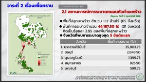 วันที่ 21 ก.พ. 2568 นางพรทิพย์ ศรีสมโภชน์ เกษตรจังหวัดชลบุรี มอบหมายให้นางสุวิสาส์ กันตอนันตพร หัวหน้ากลุ่มอารักขาพืช ประชุมชี้แจงแนวทางการสำรวจข้อมูลสถานการณ์การระบาดหนอนหัวดำมะพร้าว แก่เจ้าหน้าที่สำนักงานเกษตรอำเภอ ผ่านระบบออนไลน์ Zoom Meetings ได้แจ้งให้สำนักงานเกษตรอำเภอดำเนินการสำรวจข้อมูลสถานการณ์การระบาดของหนอนหัวดำมะพร้าวเฉพาะในพืชมะพร้าว (สำรวจรายต้น) และรายงานผลการสำรวจให้สำนักงานเกษตรจังหวัดทราบ ภายในวันที่ 13 มีนาคม 2568 เพื่อใช้เป็นข้อมูลในการเสนอขอรับการสนับสนุนงบประมาณรายจ่ายงบกลางต่อไป และเพื่อให้ดำเนินการแก้ไขปัญหาการระบาดของหนอนหัวดำมะพร้าวมีการบริหารจัดการที่รวดเร็ว แม่นยำ เหมาะสมกับสภาพพื้นที่ และสามารถควบคุมพื้นที่การระบาดได้อย่างมีประสิทธิภาพ