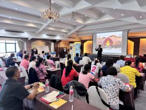 วันที่ 27 ก.พ. 2568 นางพรทิพย์ ศรีสมโภชน์ เกษตรจังหวัดชลบุรี มอบหมายให้นายพุทธินันท์ บูรณะ นักวิชาการส่งเสริมการเกษตรชำนาญการ เป็นวิทยาการบรรยายให้ความรู้ การแก้ไขปัญหาฝุ่นละอองขนาดเล็ก PM 2.5 ลดการเผา แนวทางการแก้ปัญหาจากการเผา การทำน้ำหมักและปุ๋ยอินทรีย์ แก่ผู้นำชุมชน มวลชน และเครื่อข่ายภาคประชาชนในพื้นที่จังหวัดชลบุรี จำนวน 48 คนเพื่อให้ตระหนักรู้ถึงปัญหาความมั่นคงด้านสิ่งแวดล้อมที่อาจเกิดขึ้นในพื้นที่ ปลูกจิตสำนึกการมีส่วนร่วมในการป้องกันปัญหาความมั่นคด้านสิ่งแวดล้อม และสร้างความเข้าใจเกี่ยวกับบทบาทหน้าที่ด้านลิ่งแวดล้อม รวมทั้งรับฟังปัญหาข้อขัดข้อง ข้อเสนอแนะ และแนวทางการป้องกันและแก้ไขปัญหาในชุมชน จากผู้เข้าร่วมประชุมฯ ณ โรงแรมบูติค ซิติี้ พัทยา ตำบลหนองปรือ อำเภอบางละมุง จังหวัดชลบุรี