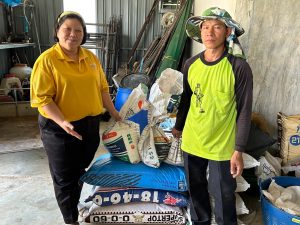 วันที่ 10 มีนาคม 2568 นางพรทิพย์ ศรีสมโภชน์ เกษตรจังหวัดชลบุรี มอบหมายให้ นางสุวิสาส์ กันตอนันตพร หัวหน้ากลุ่มอารักพืช และนายชนายุส ฐิติอุดมรักษ์ นักวิชาการส่งเสริมการเกษตรชำนาญการ ลงพื้นที่ติดตามการดำเนินกิจกรรมพัฒนาศูนย์จัดการดินปุ๋ยชุมชน (ศดปช.) ภายใต้โครงการส่งเสริมการจัดการสุขภาพพืชเพื่อเพิ่มประสิทธิภาพการผลิตสินค้าเกษตร ประจำปีงบประมาณ พ.ศ. 2568 ณ บ้านนายสุเทพ คุ้มพงษ์ อำเภอพานทองบ้านนางกลิ่นสุคนธ์ สงค์เจริญ ตำบลวัดโบสถ์ อำเภอพนัสนิคม และบ้านนางสาวประไพ พรมเต็ม ตำบลนาเริก อำเภอพนัสนิคม จังหวัดชลบุรี เพื่อสนับสนุนวัสดุการเกษตรให้แก่เกษตรกรเจ้าของแปลงเรียนรู้ สำหรับจัดทำแปลงเรียนรู้ดินปุ๋ยและขับเคลื่อนการดำเนินงานศูนย์จัดการดินปุ๋ยชุมชน ศดปช.
