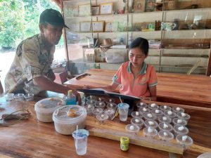 วันที่ 12 มีนาคม 2568 นางพรทิพย์ ศรีสมโภชน์ เกษตรจังหวัดชลบุรี มอบหมายให้ นายพุทธินันท์ บูรณะ นักวิชาการส่งเสริมการเกษตรชำนาญการ ลงพื้นที่ติดตามผลการดำเนินงานของศูนย์จัดการศัตรูพืชชุมชน ในการเป็นแปลงพยากรณ์ศัตรูพืชมะพร้าวระดับอำเภอและการผลิตขยายแตนเบียนบาคอน พร้อมสำรวจและติดตามการระบาดของหนอนหัวดำมะพร้าว ได้พบว่ามีจำนวนหนอนหัวดำมะพร้าวที่ลดลง จากการเร่งปล่อยแตนเบียนบราคอนและแตนเบียนอะซิโคเดส ในความถี่ที่มากขึ้นเพื่อหลีกเลี่ยงการใช้สารเคมี อีกทั้งยังหารือแนวทางการแก้ไขปัญหาหนอนหัวดำในมะพร้าวและปาล์มน้ำมันระดับอำเภอ สะท้อนปัญหาเพื่อหาแนวทางการแก้ไขต่อไป