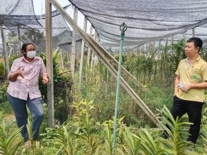เกษตรกรให้ข้อมูลว่าจำเป็นต้องรู้จักซื้ออุปกรณ์ต่างๆ อะไหล่ต่างๆ น้ำมันเครื่องชนิดต่างๆ เพื่อใช้ในการเปลี่ยนถ่ายและซ่อมบำรุงรักษาพวกเครื่องจักรกลทางการเกษตร ที่สำคัญต้องซ่อมเองเป็นเพื่อประหยัดค่าแรงช่าง พร้อมกับแก้ปัญหาต่างๆ เองได้ และบ้านของนางสายรุ้ง พงษ์พระเกตุ หมู่ที่ 7 ตำบลบึง อำเภอศรีราชา จังหวัดชลบุรี เพื่อสนับสนุนป้ายแปลงเรียนรู้ให้แก่เกษตรกรเจ้าของแปลงเรียนรู้ สำหรับจัดทำแปลงเรียนรู้ดินปุ๋ยและขับเคลื่อนการดำเนินงานศูนย์จัดการดินปุ๋ยชุมชนและติดตามสถานการณ์ของโรค แมลง ในแปลงกล้วยไม้ ณ นะโม ออคิดส์ ฟาร์ม ช่วงนี้พบการระบาดของเพลี้ยไฟ โรคเชื้อรา และแบคทีเรีย ทำให้ดอกกล้วยไม้เสียหาย สภาพอากาศทำให้กล้วยไม้ออกผลผลิตน้อย