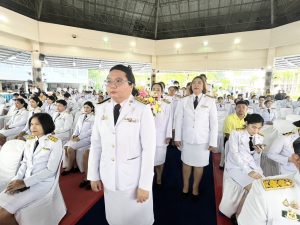 วันอาทิตย์ที่ 6 เมษายน 2568 เวลา 08.30 น. นางพรทิพย์ ศรีสมโภชน์ เกษตรจังหวัดชลบุรี มอบหมายให้ นางสาวชลัยกร วิมลรัตน์ หัวหน้ากลุ่มยุทธศาสตร์และสารสนเทศ พร้อมด้วยเจ้าหน้าที่กลุ่ม เข้าร่วมพิธีวันพระบาทสมเด็จพระพุทธยอดฟ้าจุฬาโลกมหาราช และวันที่ระลึกมหาจักรีบรมราชวงศ์ ณ อาคารอเนกประสงค์วิทยาการ โรงเรียนชลกันยานุกูล อำเภอเมืองชลบุรี จังหวัดชลบุรี