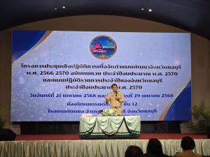 วันที่ 21 เมษายน 2568 เวลา 09.00 น. นางพรทิพย์ ศรีสมโภชน์ เกษตรจังหวัดชลบุรี พร้อมด้วยเจ้าหน้าที่กลุ่มยุทธศาสตร์และสารสนเทศ เข้าร่วมการประชุมเชิงปฏิบัติการเพื่อจัดทำแผนพัฒนาจังหวัดชลบุรี (พ.ศ. 2566 – 2570) ฉบับทบทวนประจำปีงบประมาณ พ.ศ. 2570 และแผนปฏิบัติราชการประจำปีของจังหวัดชลบุรี ประจำปีงบประมาณ พ.ศ. 2570 ณ โรงแรมรัตนชล อำเภอเมืองชลบุรี โดยมี นายอดิเรก อุ่นโอสถ รองผู้ว่าราชการจังหวัดชลบุรี เป็นประธานเปิดการประชุม มีผู้เข้าร่วมกว่า 160 คน ประกอบด้วยหัวหน้าส่วนราชการ ผู้บริหารท้องถิ่น และภาคเอกชน