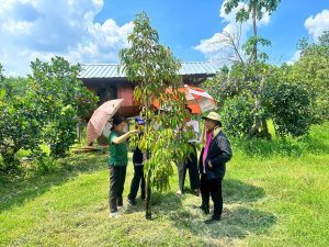 นางพรทิพย์ ศรีสมโภชน์ เกษตรจังหวัดชลบุรี มอบหมายให้ เจ้าหน้าที่กลุ่มอารักพืช ร่วมกับเจ้าหน้าที่สำนักงานเกษตรเกาะจันทร์ ลงพื้นที่สำรวจ วินิจฉัยโรคและแมลงของทุเรียน โดยพบแมลงศัตรูพืช อาการใบทุเรียนไหม้จากซันเบิร์น และอาการขาดธาตุอาหารของขนุน ณ หมู่ 5 ตำบลเกาะจันทร์ อำเภอเกาะจันทร์ จังหวัดชลบุรี