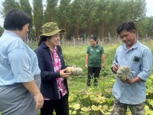 วันที่ 29 เมษายน 2568 นางพรทิพย์ ศรีสมโภชน์ เกษตรจังหวัดชลบุรี มอบหมายให้ นางสุวิสาส์ กันตอนันตพร หัวหน้ากลุ่มอารักขาพืช พร้อมด้วย นางสาววรรณิกา จินะการ นักวิชาการส่งเสริมการเกษตรปฏิบัติการ และเจ้าหน้าที่สำนักงานเกษตรอำเภอเกาะจันทร์ และสำนักงานเกษตรอำเภอบ่อทอง ติดตามการใช้ปัจจัยควบคุมศัตรูพืชที่ได้สนับสนุนให้กับเกษตรกร ภายใต้โครงการส่งเสริมการจัดการสุขภาพพืชเพื่อเพิ่มประสิทธิภาพการผลิตสินค้าเกษตร ปี 2568 ณ แปลงเกษตรกร หมู่ 13 ตำบลเกาะจันทร์ อำเภอเกาะจันทร์ และหมู่ 5 ตำบลบ่อกวางทอง อำเภอบ่อทอง จังหวัดชลบุรี โดยการติดตามพบว่าเกษตรกรมีการปรับใช้สารชีวภัณฑ์ให้เหมาะสมกับแปลงของตนเอง โดยลดการการพึ่งพาสารเคมีไปจนถึงไม่พึ่งพาสารเคมี และเห็นผลในการจัดการศัตรูพืชได้ชัดเจน