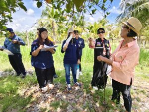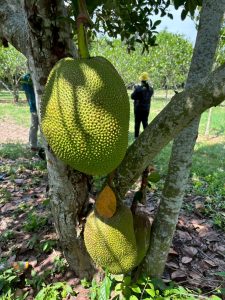 วันที่ 6 พฤษภาคม 2568 นางพรทิพย์ ศรีสมโภชน์ เกษตรจังหวัดชลบุรี เป็นประธานคณะทำงานเพื่อพิจารณาคำขอ ตรวจสอบกระบวนการผลิต ควบคุมคุณภาพสินค้าและแหล่งที่มาของสิ่งบ่งชี้ทางภูมิศาสตร์ “ขนุนหนองเหียงชลบุรี” พร้อมคณะทำงานฯ ลงพื้นที่อำเภอพนัสนิคม เพื่อตรวจรับรองตามระบบควบคุมคุณภาพและมาตรฐานสินค้าส่งบ่งชี้ทางภูมิศาสตร์ไทย (Internal Control) แก่เกษตรกรหรือผู้ประกอบการที่สมัครขออนุญาตใช้ตราสัญลักษณ์ GI ไทย การตรวจรับรองดังกล่าว เป็นระบบการควบคุมตรวจสอบคุณภาพกระบวนการผลิตและแหล่งที่มาของสินค้า