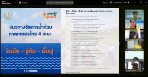 การประชุมมีการพูดคุย หารือในประเด็นการเตรียมความพร้อมจากการเข้าสู่ช่วงฤดูฝนตามประกาศของกระทรวงอุตุนิยมวิทยา สถานการณ์น้ำที่สำคัญในจังหวัดชลบุรี แนวทางการจัดการความเสี่ยง น้ำท่วมภาคการเกษตร จำแนกตามกลุ่มพืช แนวทางการช่วยเหลือเมื่อเกิดภัยพิบัติ และระบบสนับสนุนการตัดสินใจเพื่อการบริหารจัดการภัยพิบัติจากหน่วยงานที่มีการพัฒนาระบบต่างๆ ตลอดจนมีการพิจารณาการทำข้อมูลความเสี่ยงน้ำท่วมของพืชรายพื้นที่ และการจัดทำแผนที่เสี่ยงภัยน้ำท่วม Flood Risk Map ในระดับอำเภอและจังหวัด เพื่อเตรียมความพร้อมและใช้เป็นข้อมูลในการติดตาม เฝ้าระวัง และเตรียมพร้อม ฟื้นฟูให้ความช่วยเหลือเกษตรกรผู้ประสบภัยได้ทันช่วงเวลา